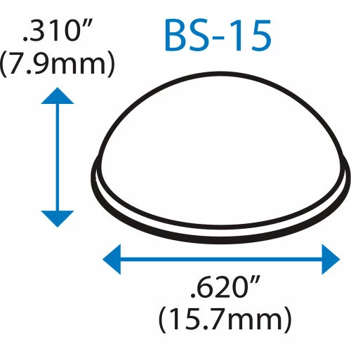 Hemispherical bumper feet are commonly used forsound dampeningapplications. The domed shaped bumpers work best for softening cabinet doors from slamming, reducing noise, and extending the life of the cabinets. Versatile round bumpers are found on the bottom of laptop computers toprevent slidingon any surface and smaller bumper profiles are used on the inside to protect the laptop screen and keyboard when closing it. Small round bumpers are used onstandoffs for glass shelves. Simply peel and stick the bumper foot to your required location. These bumpers can be used everywhere and the application possibilities are endless. Bumper Specialties BS-15 is equivalent to 3M Bumponâ„¢SJ5027, SJ5327
